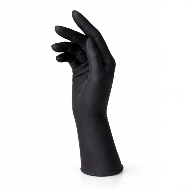 • Hochwertige medizinische, puderfreie Nitrilhandschuhe in schwarz