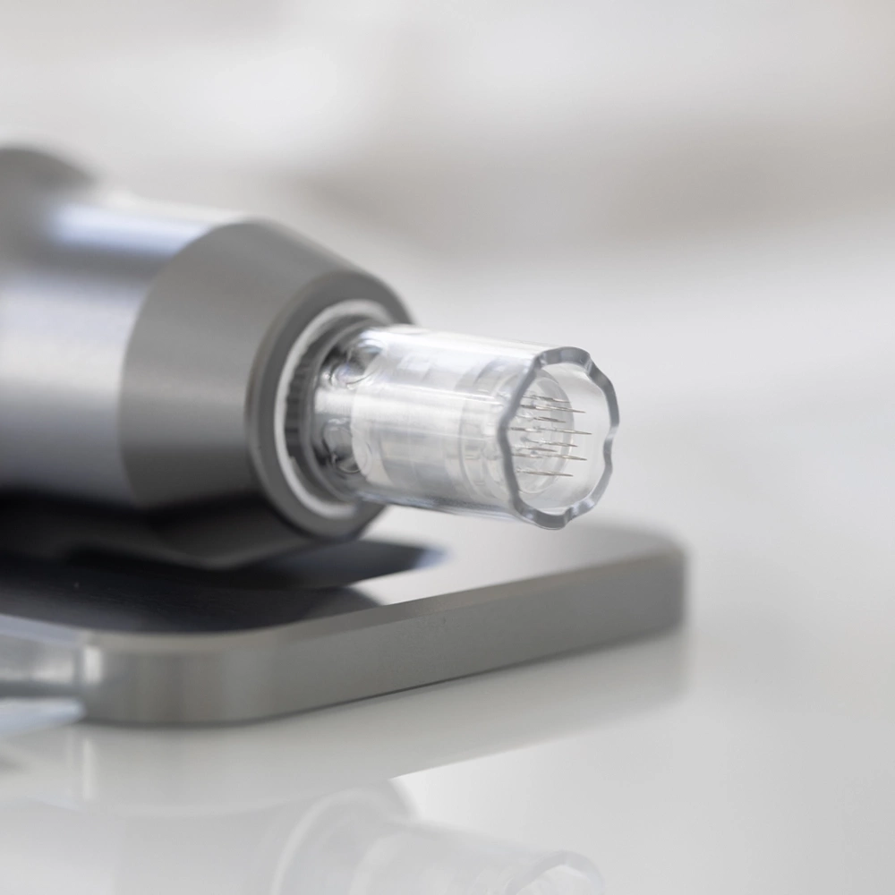 Die Mikronadeln bestehen aus mit Molybdän angereichertem medizinischem Stahl, der sie härter und abriebfester macht und sich durch hohe mechanische Festigkeit auszeichnet. Sie ermöglichen präzise und gleichmäßige Mikropunkturen mit minimaler Gewebetraumatisierung. Das Design der Nadeln fördert die Reproduzierbarkeit der Verfahren und erhöht die Aufnahme der Wirkstoffe während der Behandlung. Die Nadeln sind auch chemisch resistent - sie reagieren nicht mit Seren, Säuren oder leitfähigen Gelen.