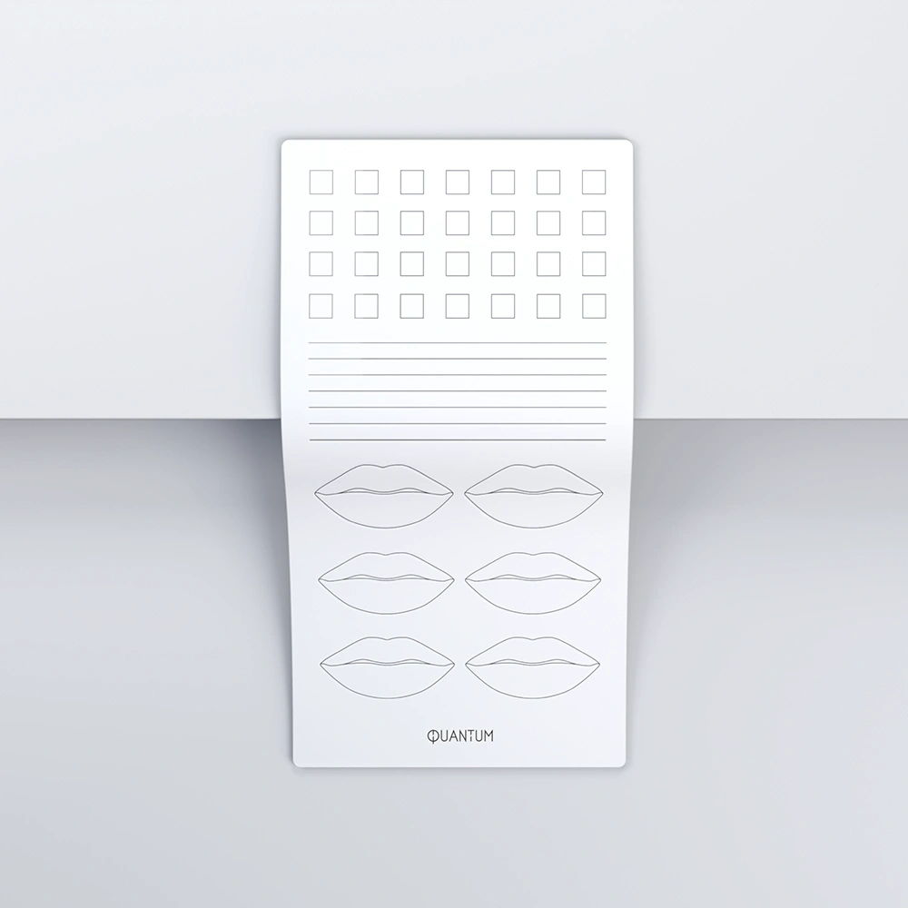 Latexhaut zum Üben der Lippenpigmentierung. Das weiße Material, aus dem die Haut besteht, ermöglicht eine schnellere Pigmentierung als herkömmliche gelbe Haut, die im Quantum-Shop erhältlich ist. Dank ihrer besonderen Dicke und Materialdichte imitiert die Haut die Arbeit an echter Haut. Das Design auf der Haut ist in einzelne Stufen unterteilt, die Schritt für Schritt dabei helfen, die richtigen Handbewegungen zu beherrschen und die Lippenpigmentierung zu erleichtern. Falls Schwierigkeiten beim Reinigen der Haut bei Verwendung von Hybridpigmenten auftreten, empfehlen wir die Verwendung von Babyöl zur Reinigung.