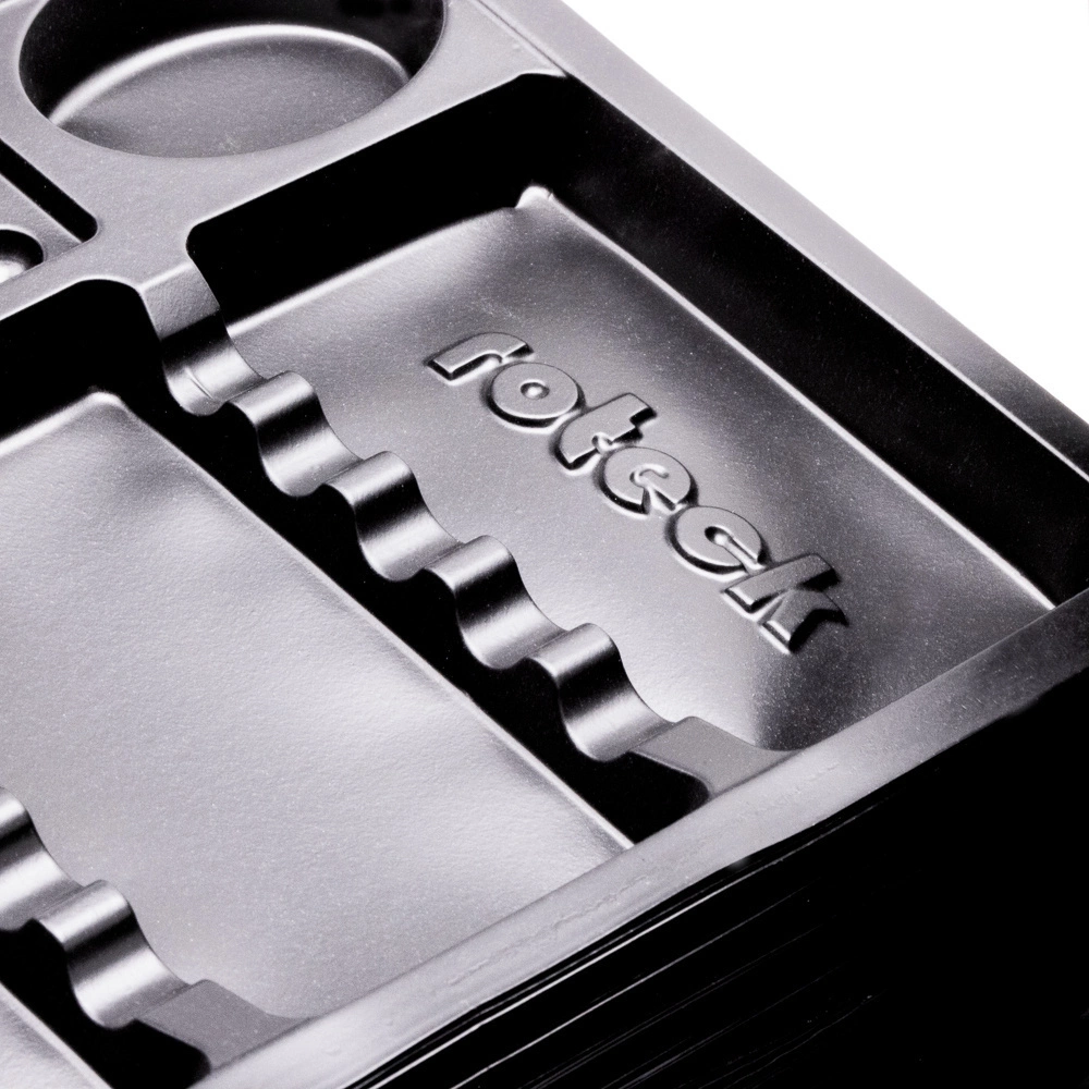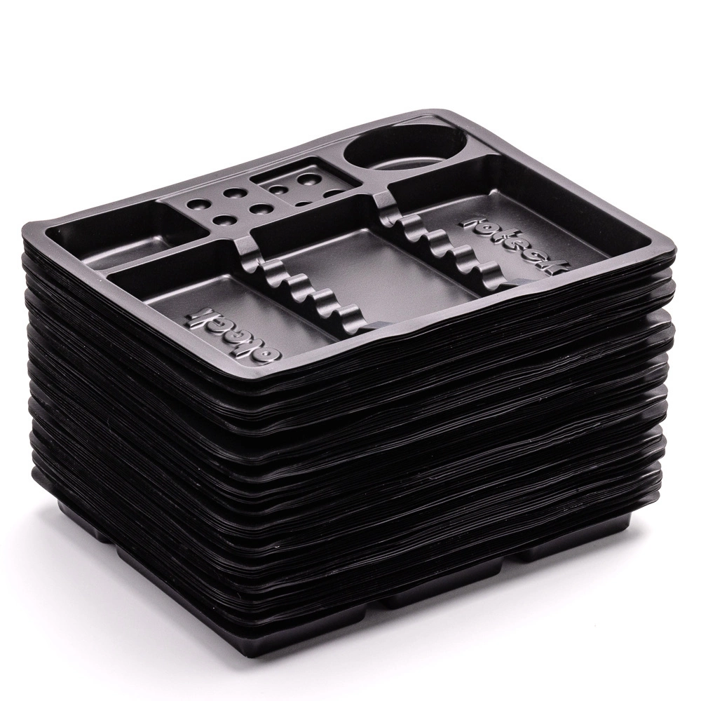Podzielona przestrzeń wewnątrz tacek pozwala na łatwe oddzielenie różnych produktów i zapobiega ich mieszaniu się.