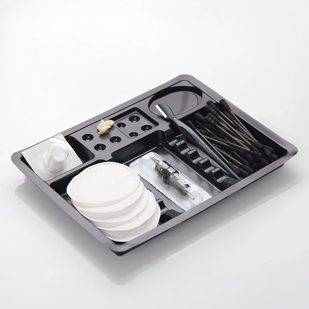 Jednorazowe tacki służą jako baza pod niezbędne produkty używane podczas zabiegu makijażu permanentnego.